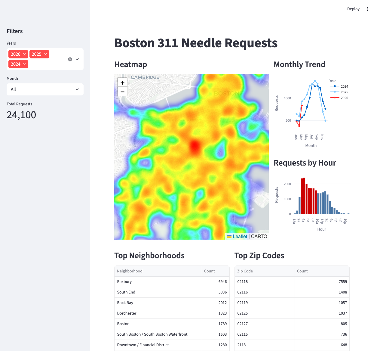 uv syncinstalls all dependenciesuv run boston-needle-map rungeneratesdocs/index.htmlanddocs/needle_data.jsonuv run boston-needle-map explorelaunches Streamlit with heatmap and chartsuv run boston-needle-map cache-clearclearstmp/cacheuv run ruff check src/passes cleanuv run mypy src/passes strict modelefthook install && git commitruns pre-commit hooks🤖 Generated with Claude Code
