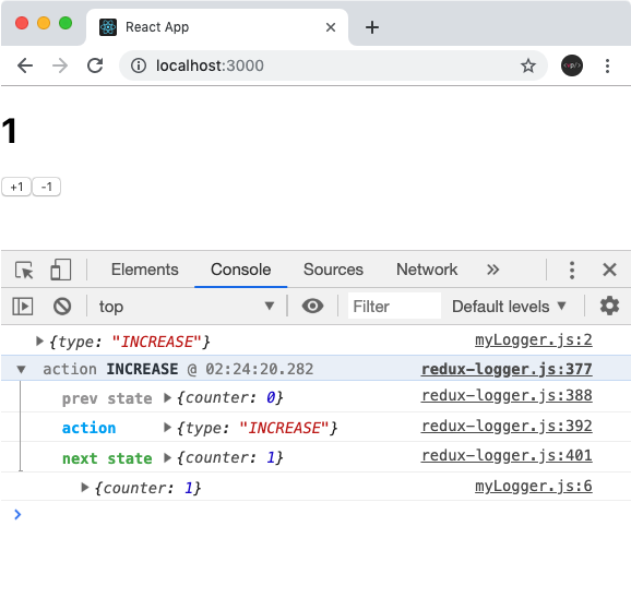 const store = createStore(rootReducer, applyMiddleware(myLogger, logger)); // 여러개의 미들웨어를 적용 할 수 있습니다.