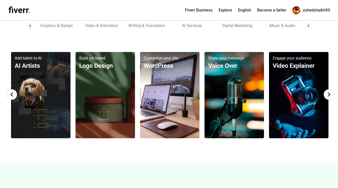 - Gigs page with all categories