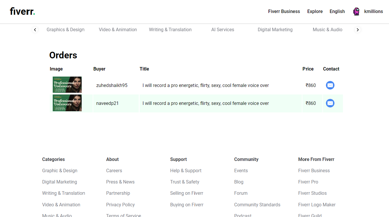 - My Orders Section for details of all gigs bought